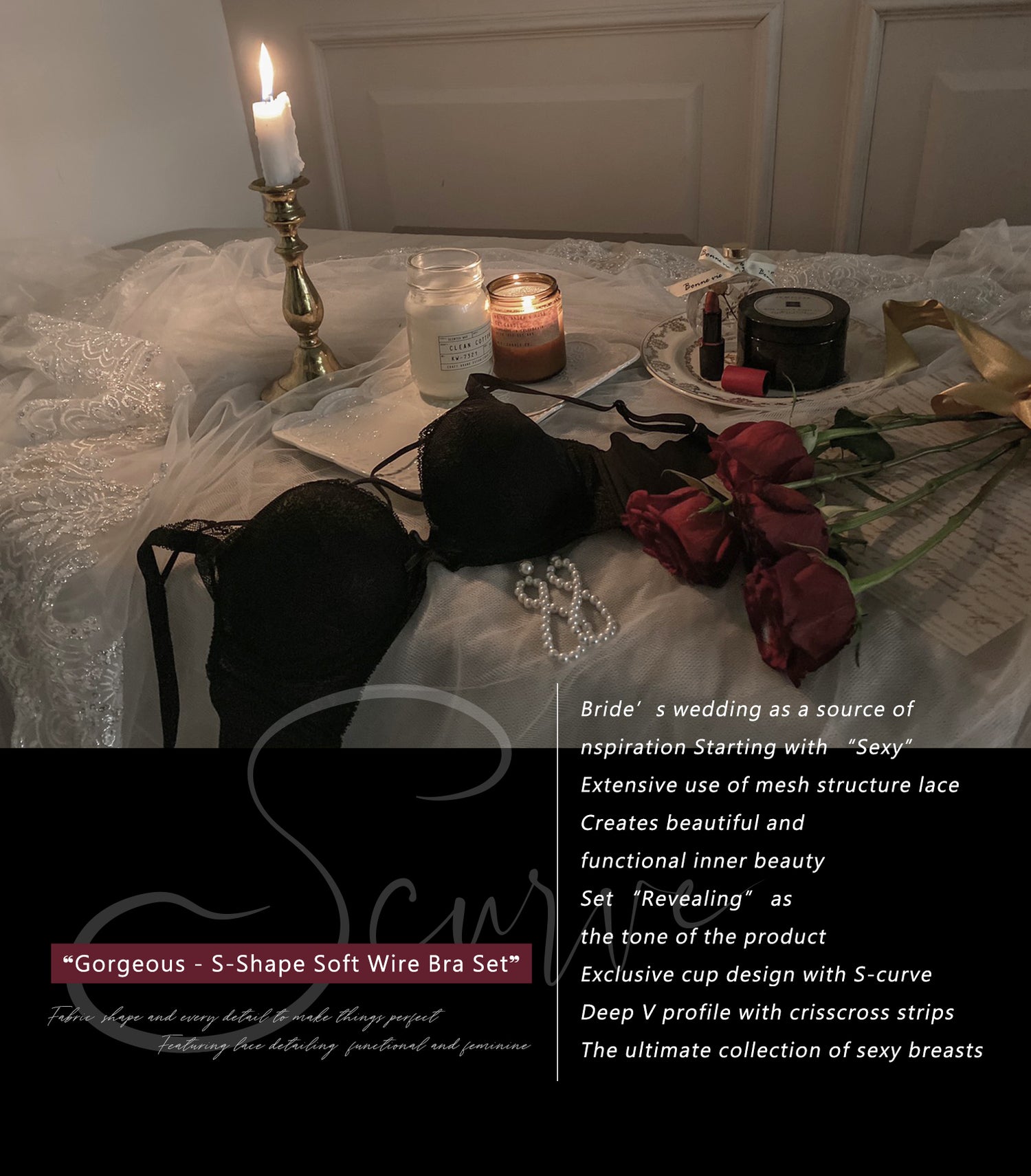 Gorgeous - S-Shape Soft Wire Bra Set Luxurious Black