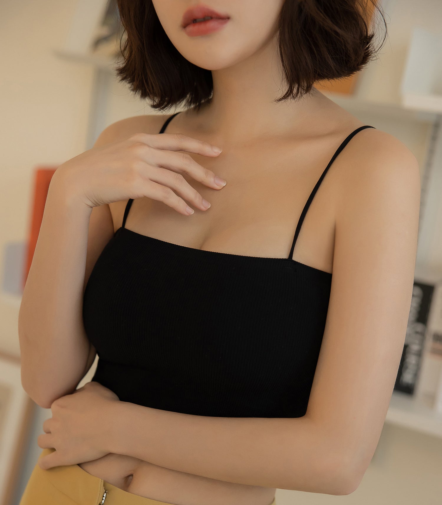 Thin Shoulder Screw Thread with Flat Chest Padding Bra Black