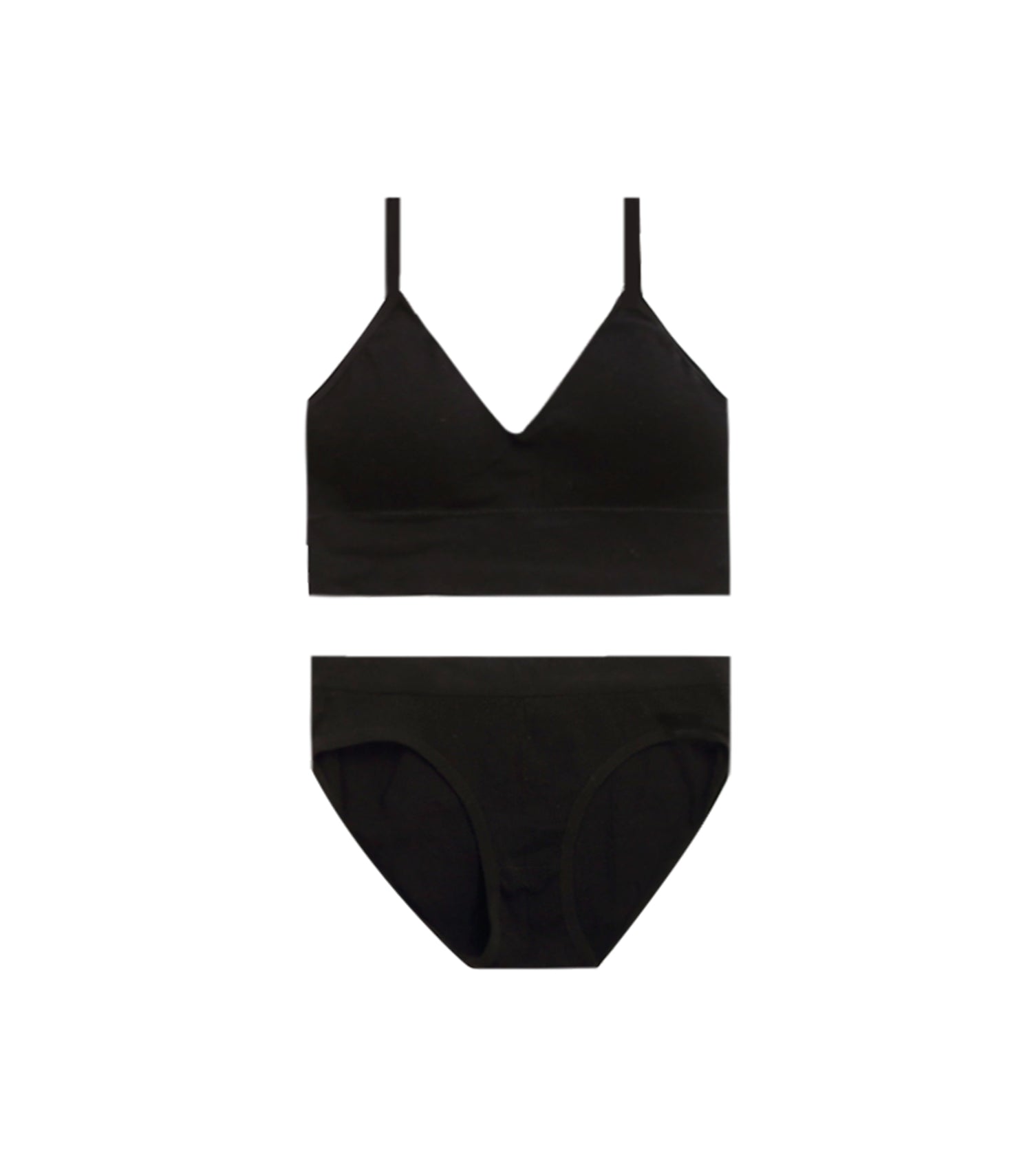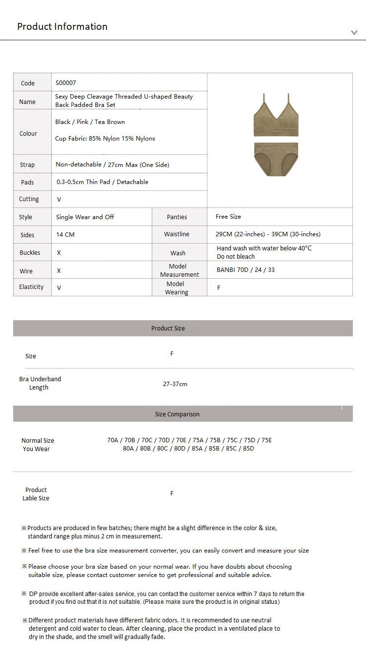 Sexy Deep Cleavage Threaded U-shaped Beauty Back Padded Bra Set Black