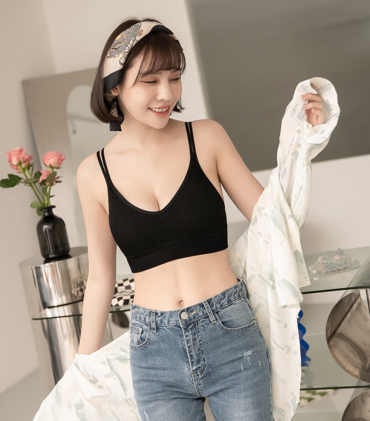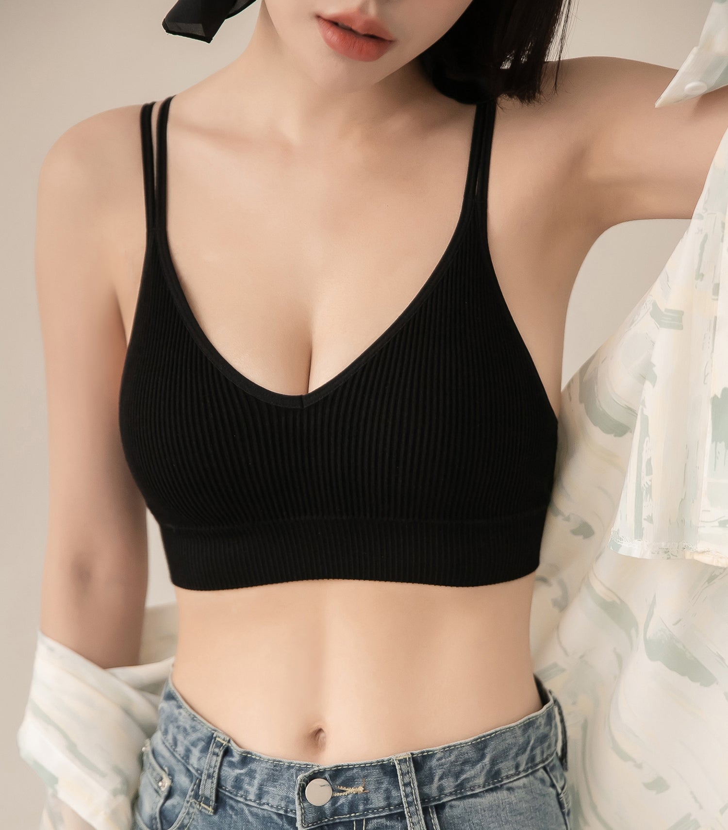 V-Neck Threaded Double Strap Triangular Cup Camisole Black