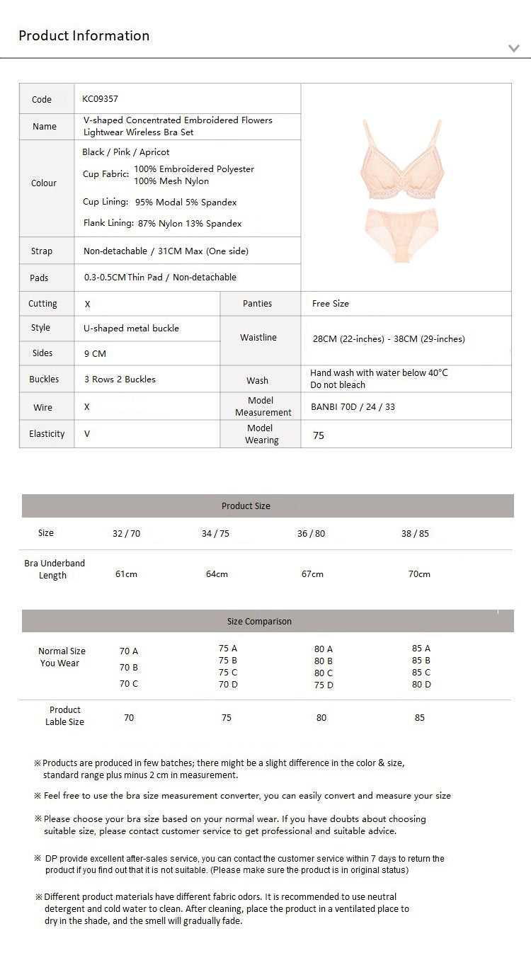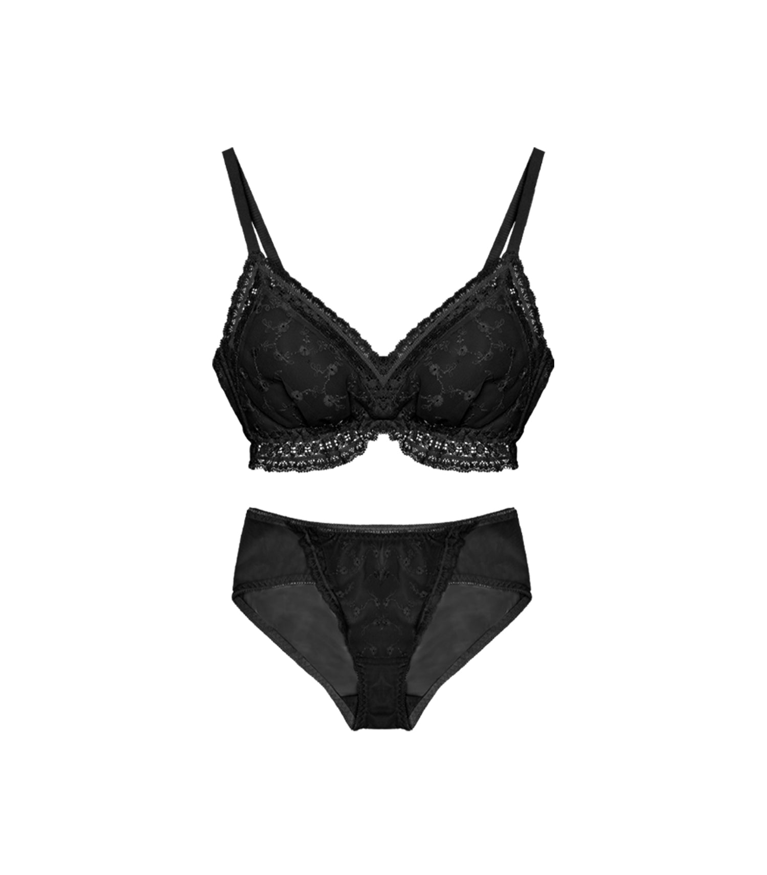 Wireless V-shaped Cross Concentrated Flora Embroidery Thin Bra Set Black
