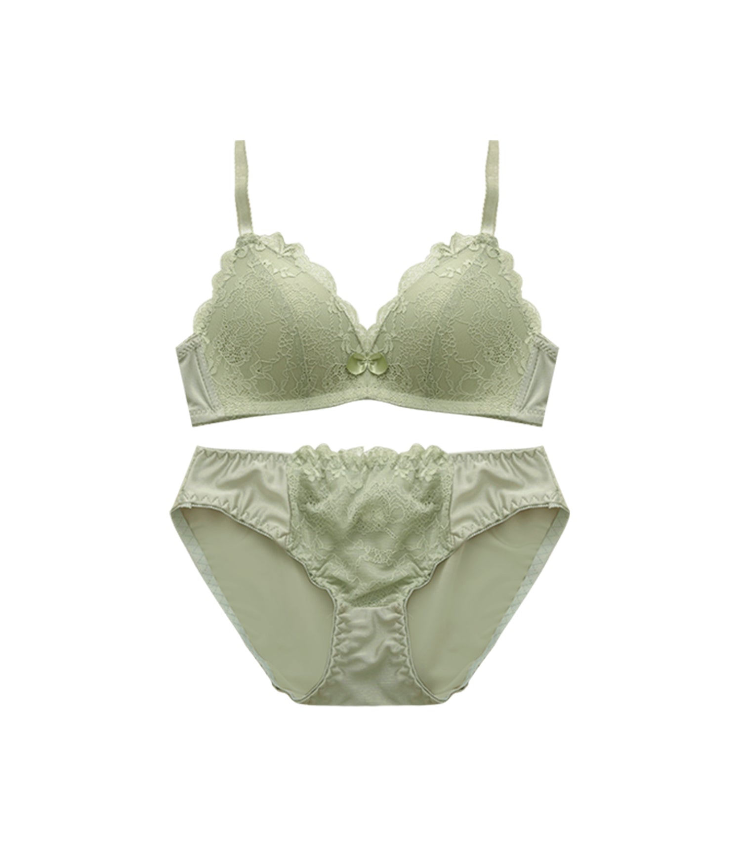 Light Weighted Deep V Lace Wireless Bra Set Green