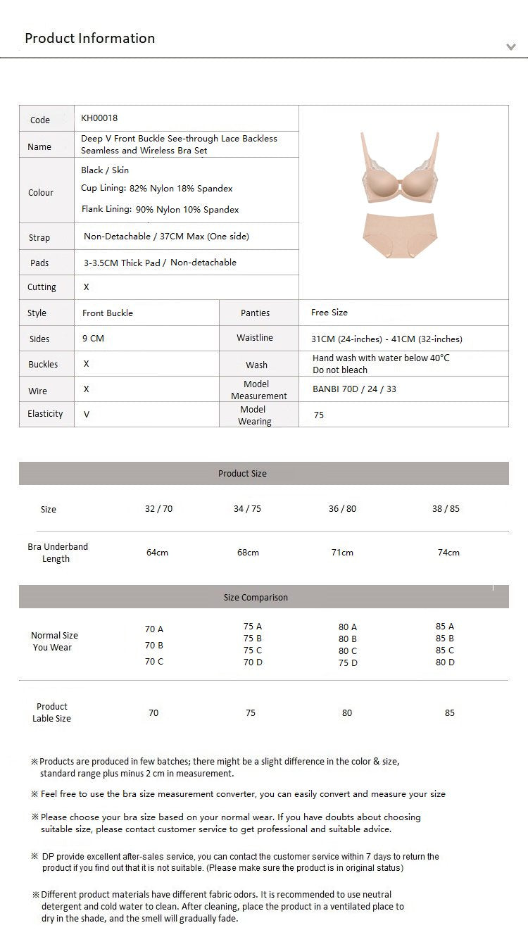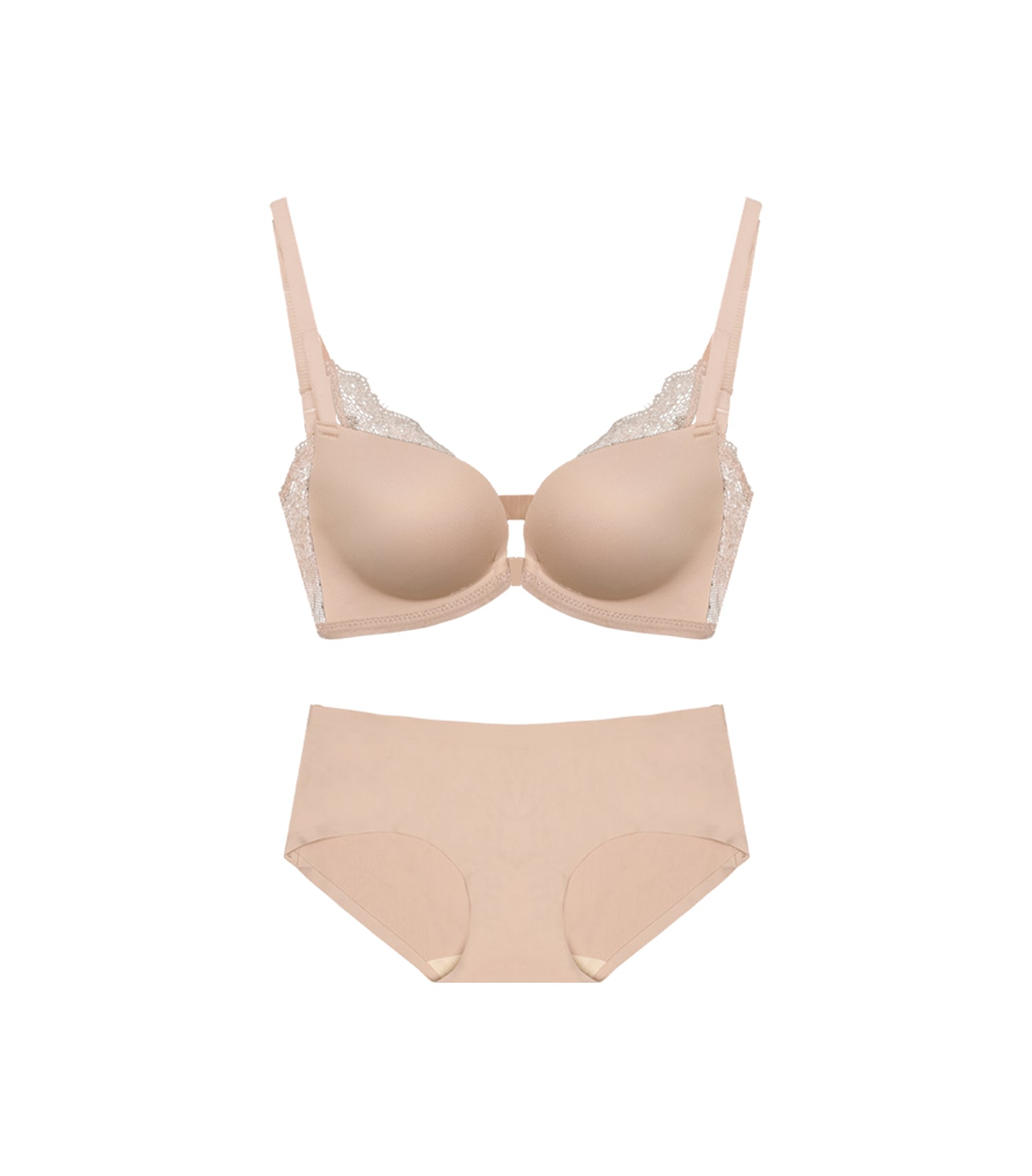 Deep Cleavage Front Buckle Seamless Wireless Lace Sexy Back Bra Set Nude Pink