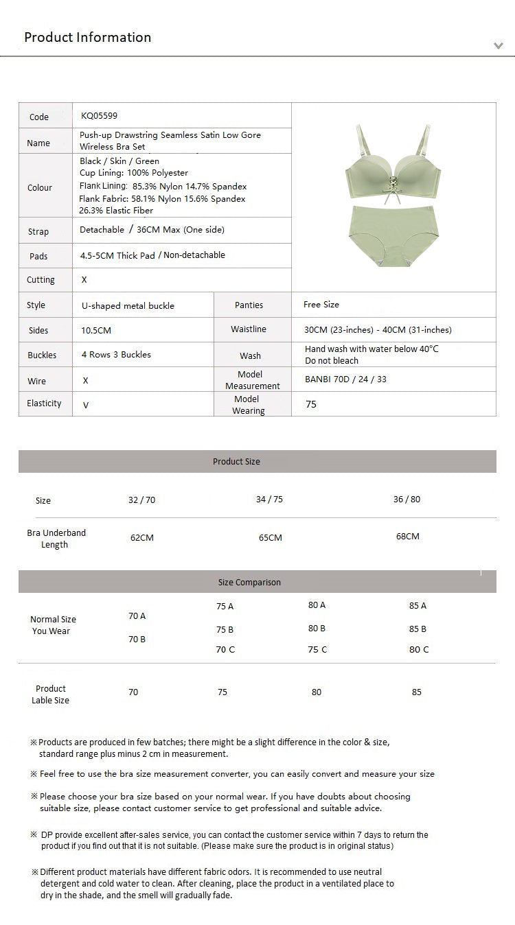Push-up Drawstring Seamless Satin Deep V Wireless Bra Set Nude