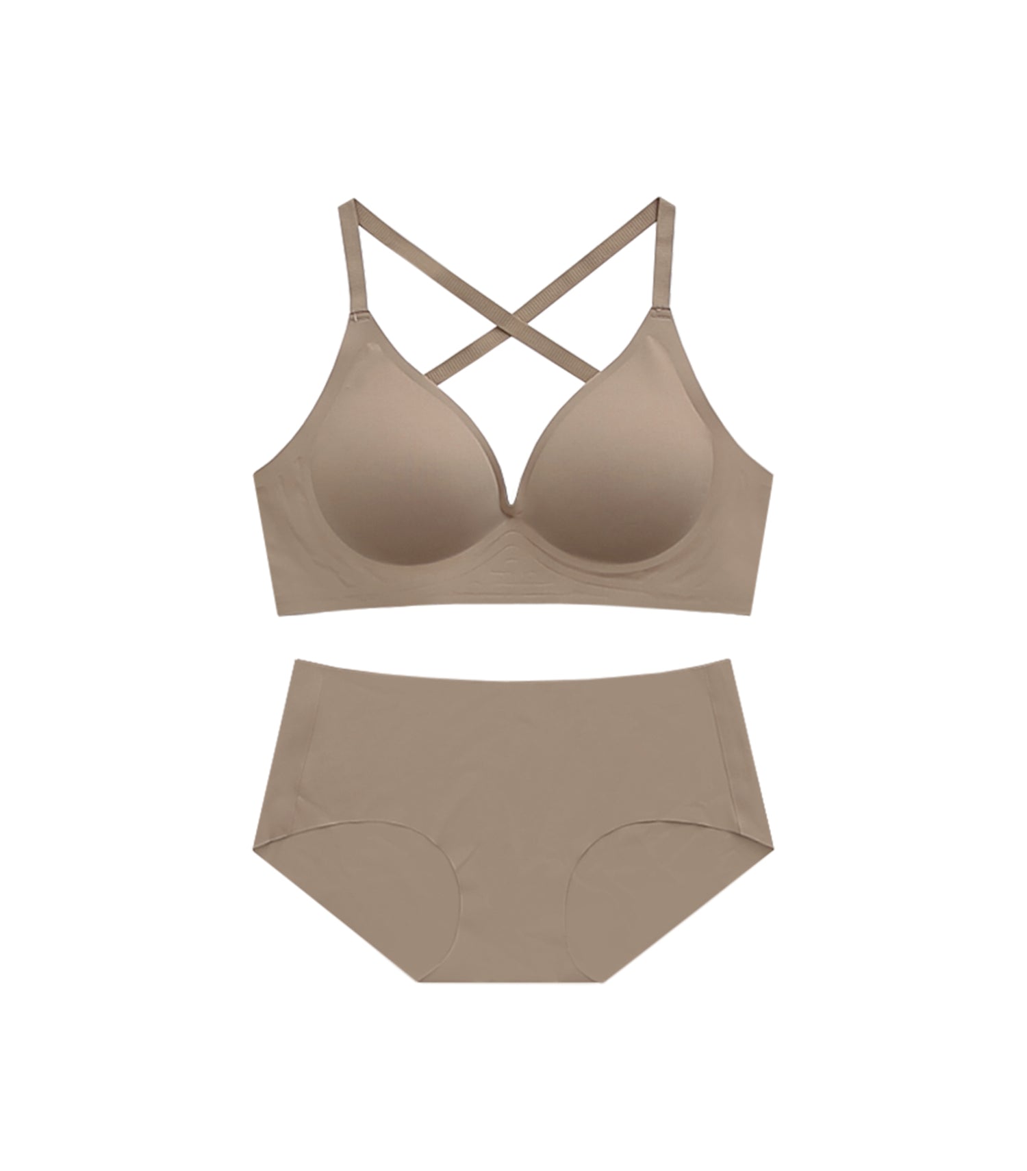Deep V Plain Seamless Concentrated Cross Beauty Back Wireless Bra Set Coco
