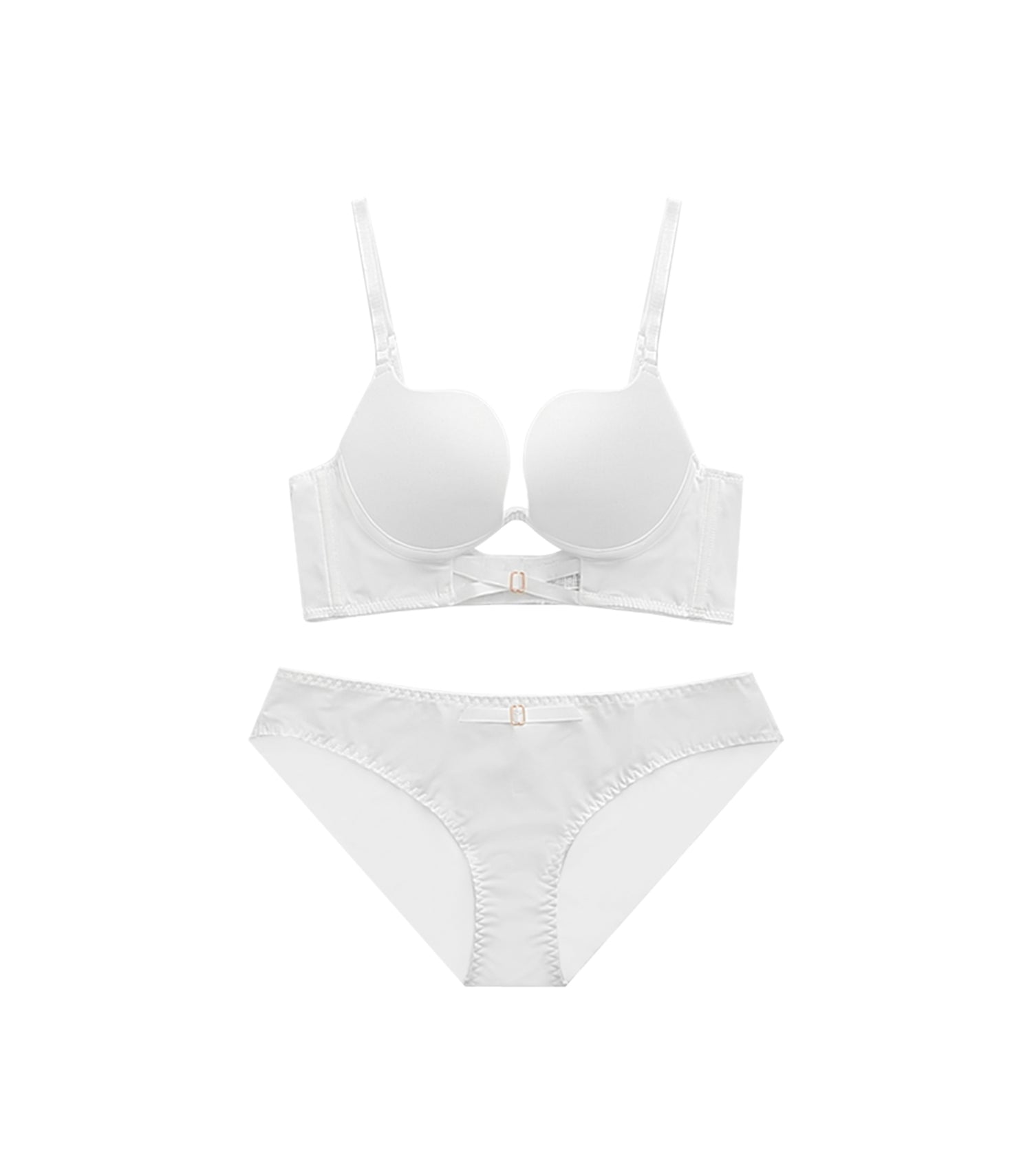 Sexy Deep Cross Hollow Out Soft Wire Plain Seamless Bra Set White