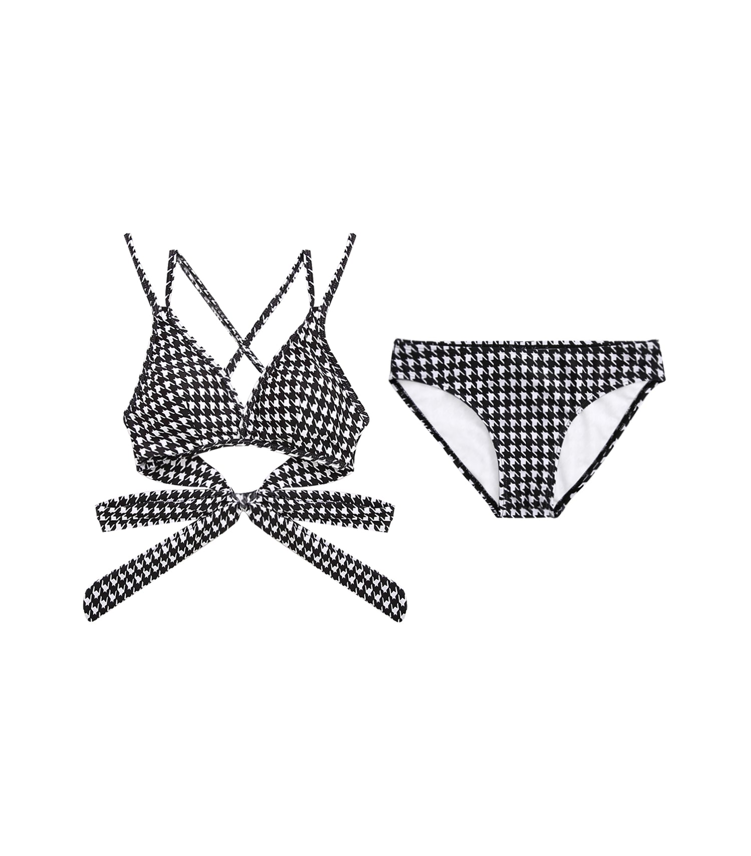 Concentrated Double Strap Houndstooth Two Piece Bikini Houndstooth