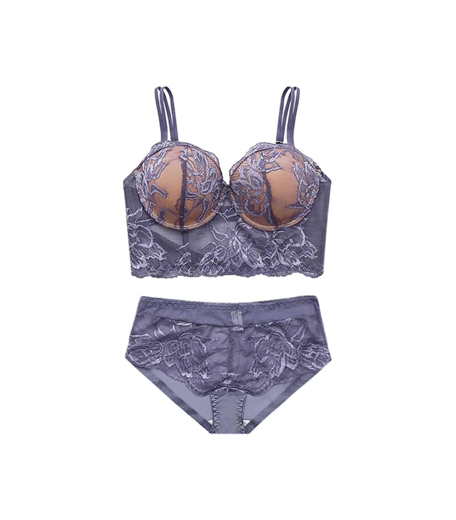Laced Solid Levitate Gauze Half Cup Bra Set Purple