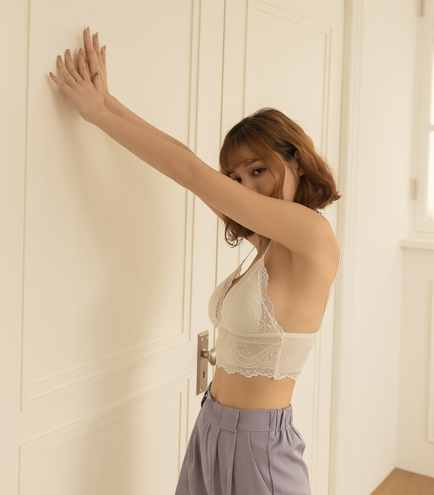 Perfect Deep V Flora Lace Padding Tube White
