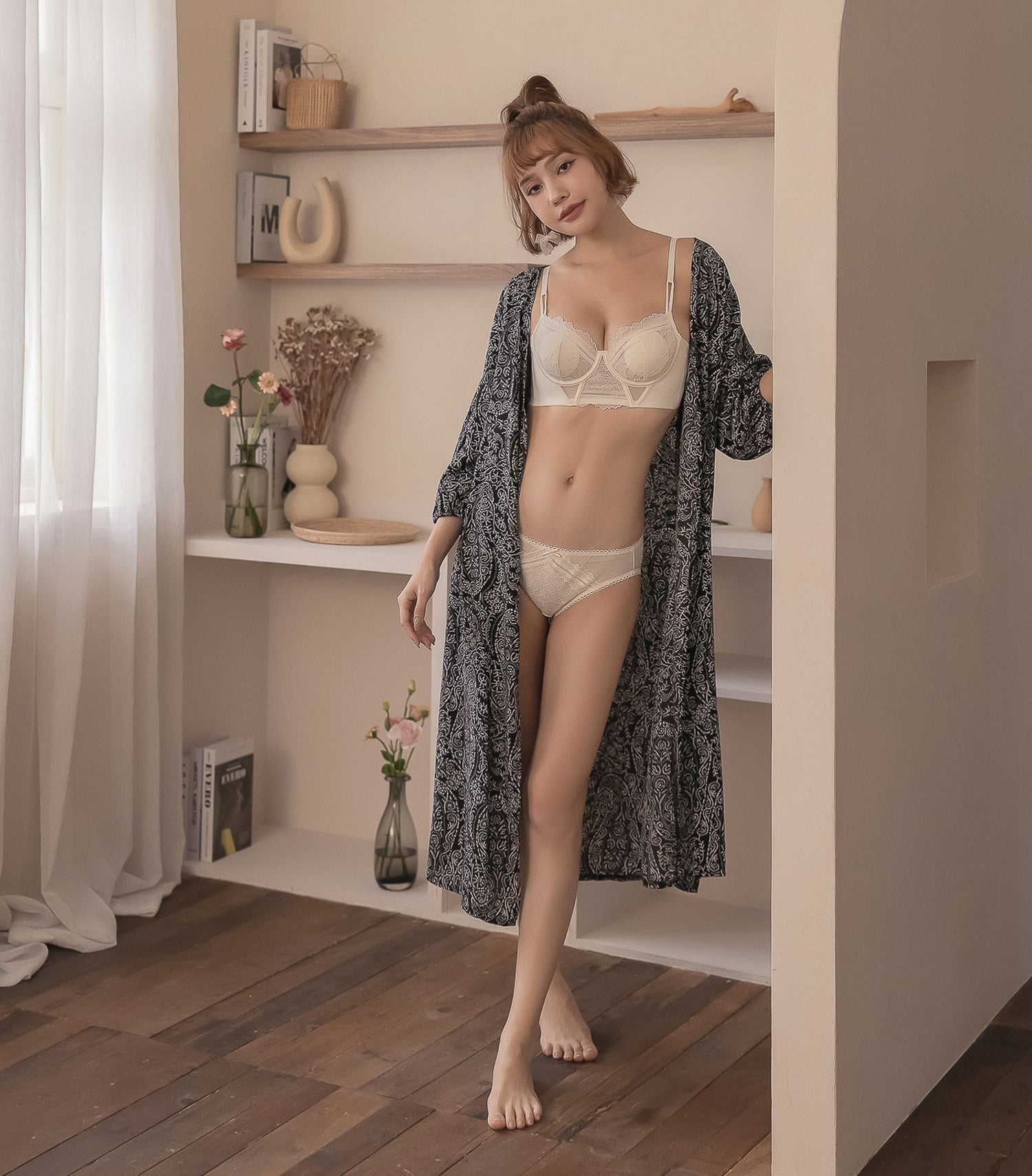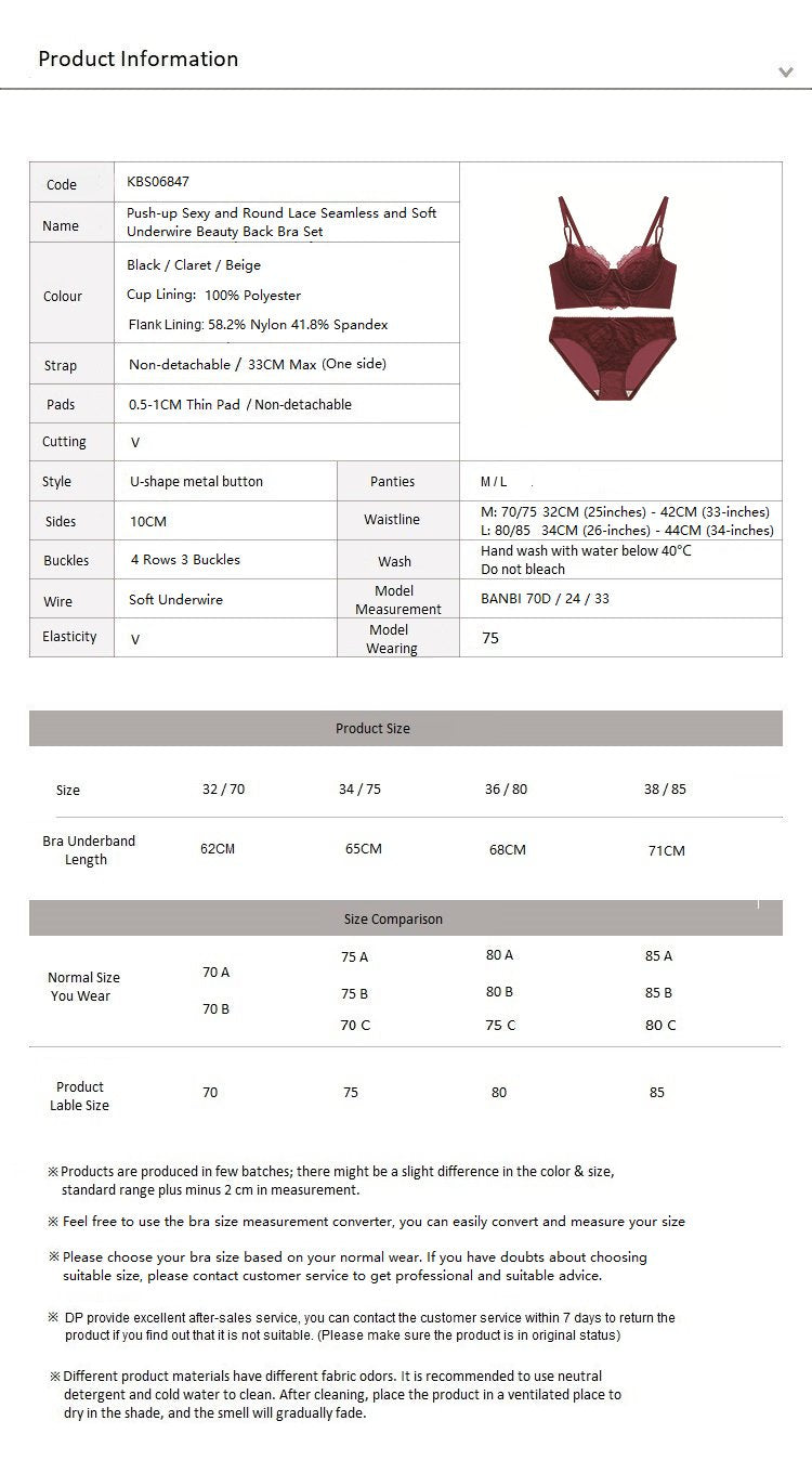 Push-up Sexy Lace Seamless and Soft Wired Beauty Back Bra Set Cream