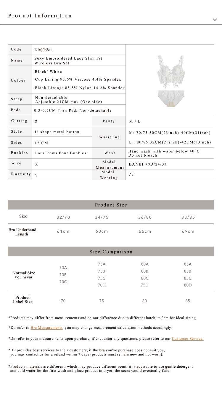 Sexy Embroidered Lace Slim Fit Wireless Bra Set Black