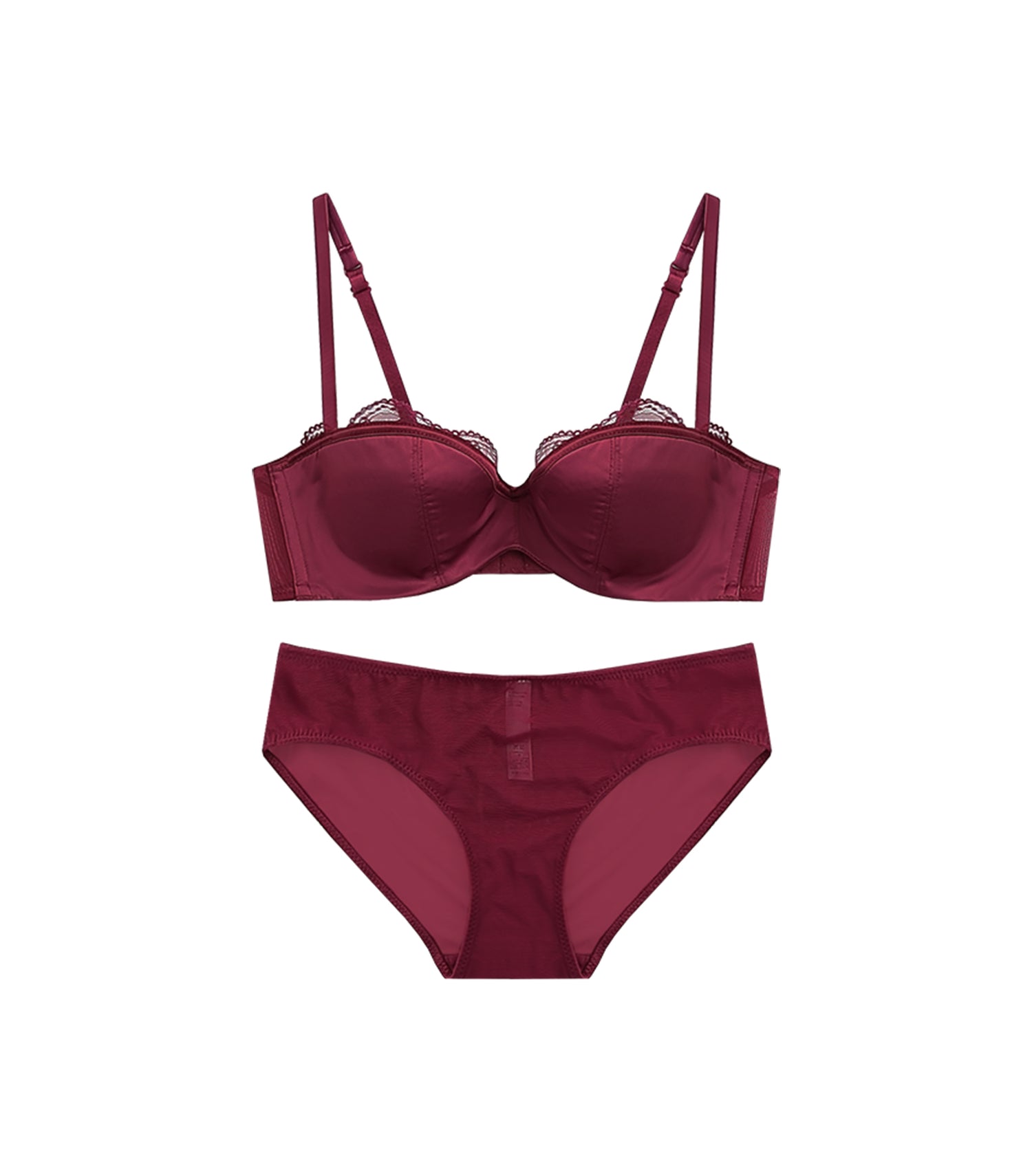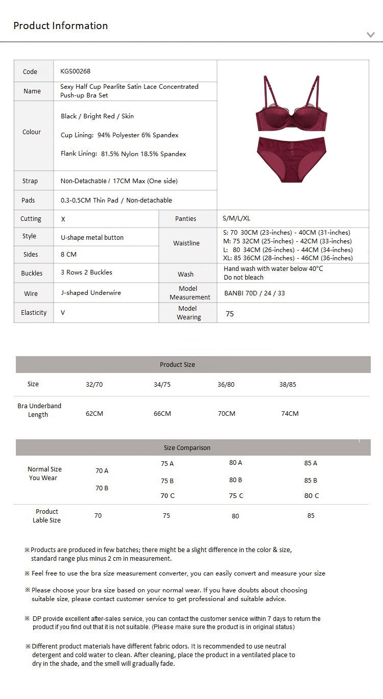 Sexy Half Cup Pearlite Satin Lace Concentrated Push-up Bra Set Bright Red