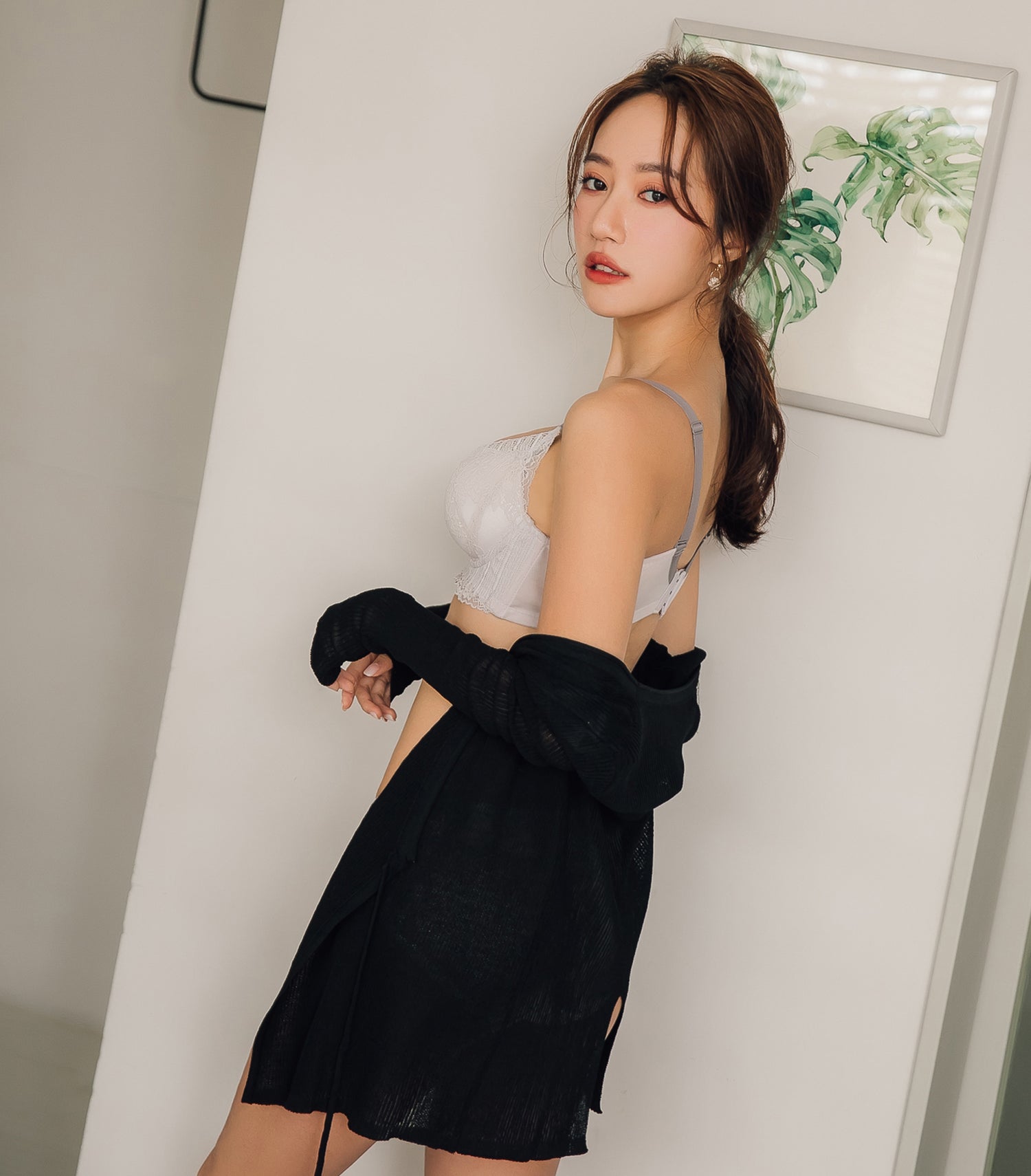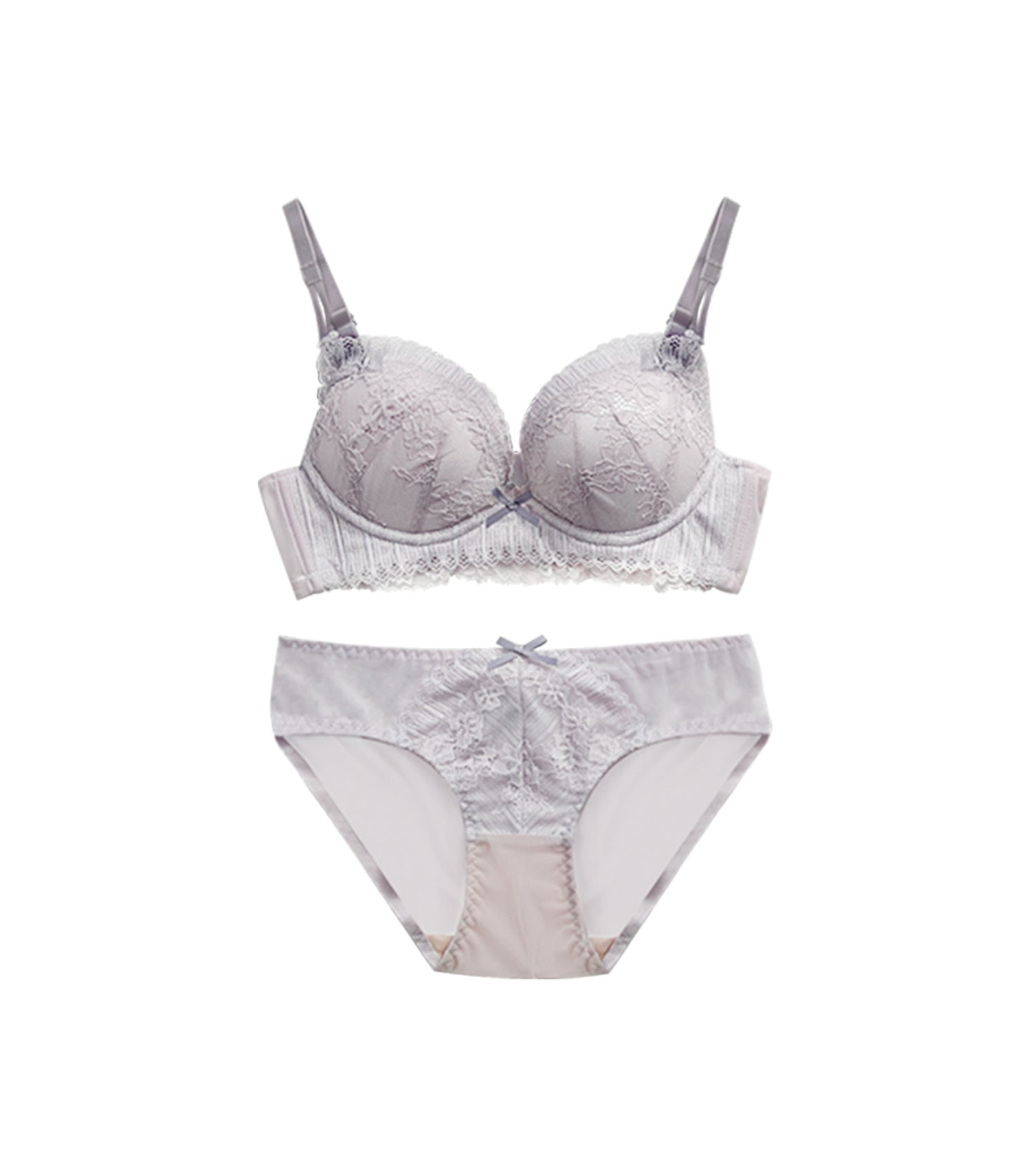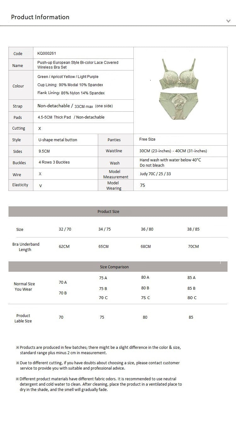 Push-up European Style Bi-color Lace Covered Wireless Bra Set Light Purple