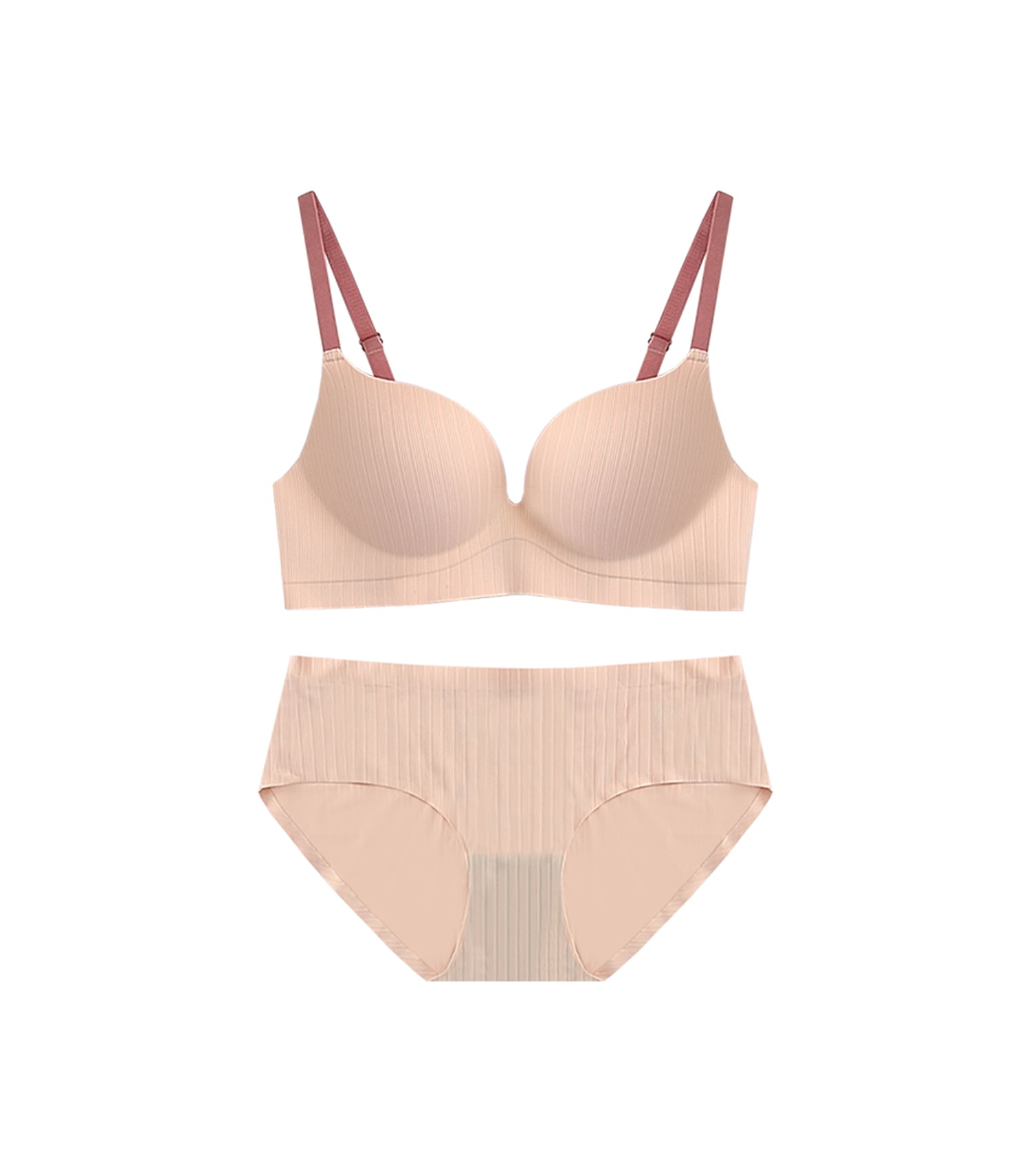 Push-up Seamless Zero Coverage Wireless Bra Set Pink