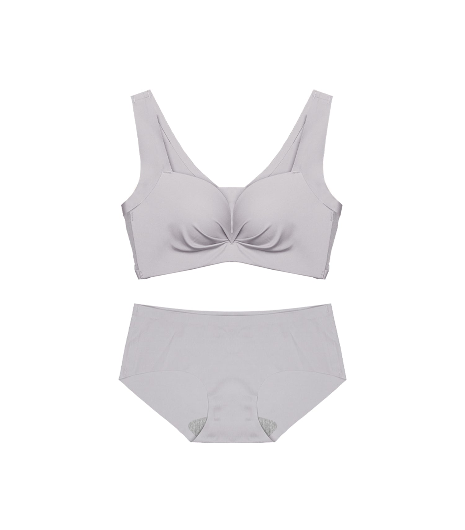 Seamless Concentrated Wireless Wide Strap Beauty Back Bra Set Light Grey