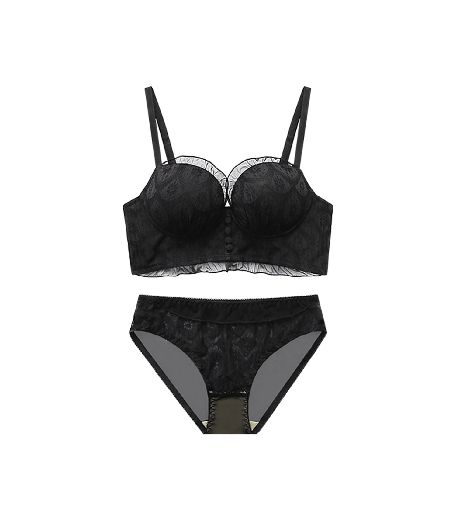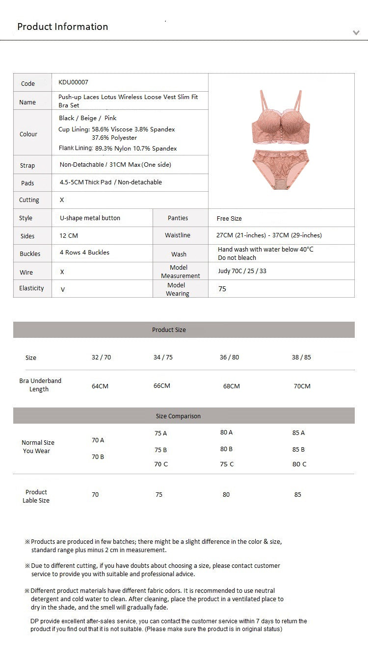 Push-up Laces Lotus Wireless Loose Vest Slim Fit Bra Set Black