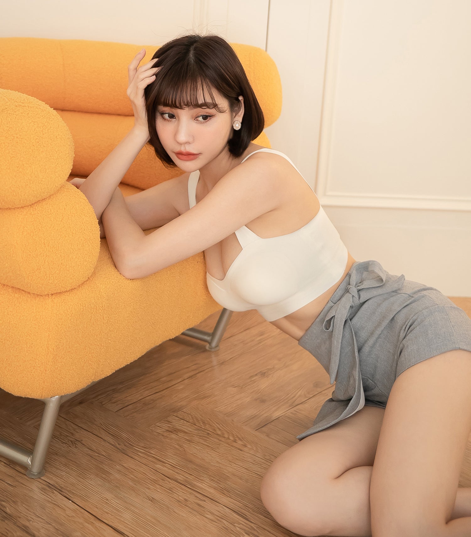 Smooth Seemless V Style Wireless Tank Top Bra- No Bottoms Creamy White