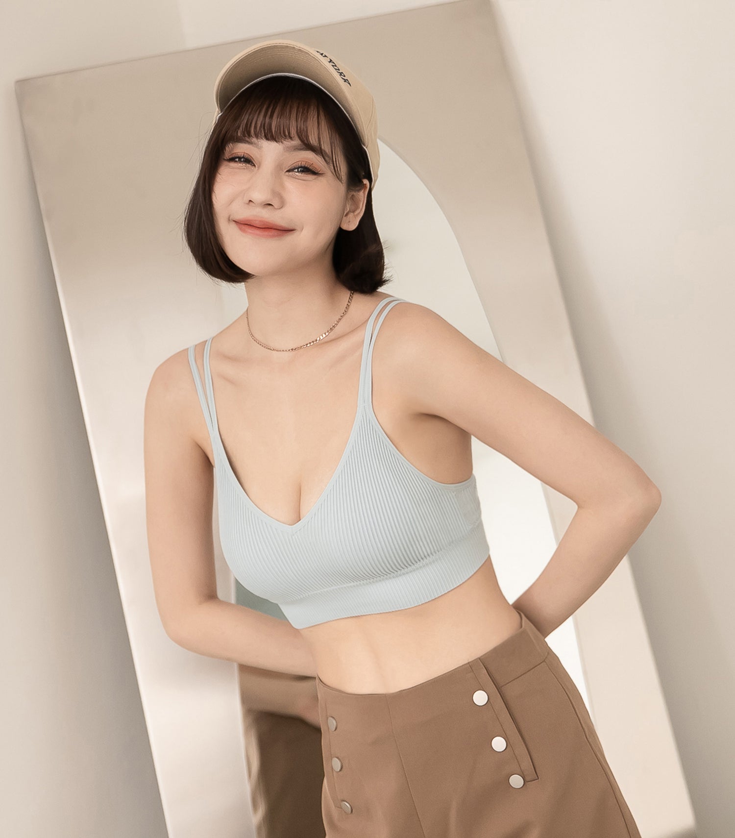 V-Neck Threaded Double Strap Triangular Cup Camisole Blue