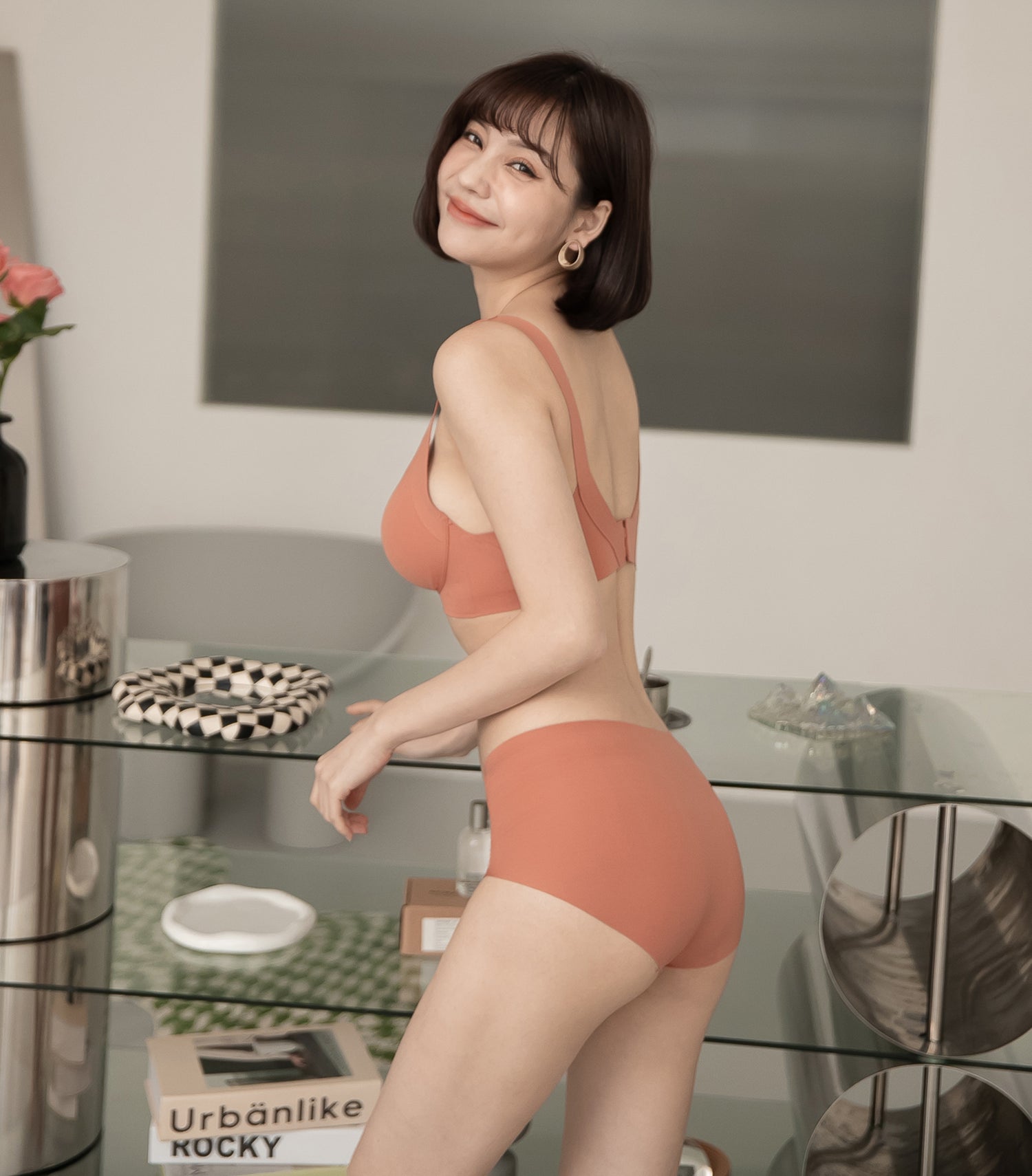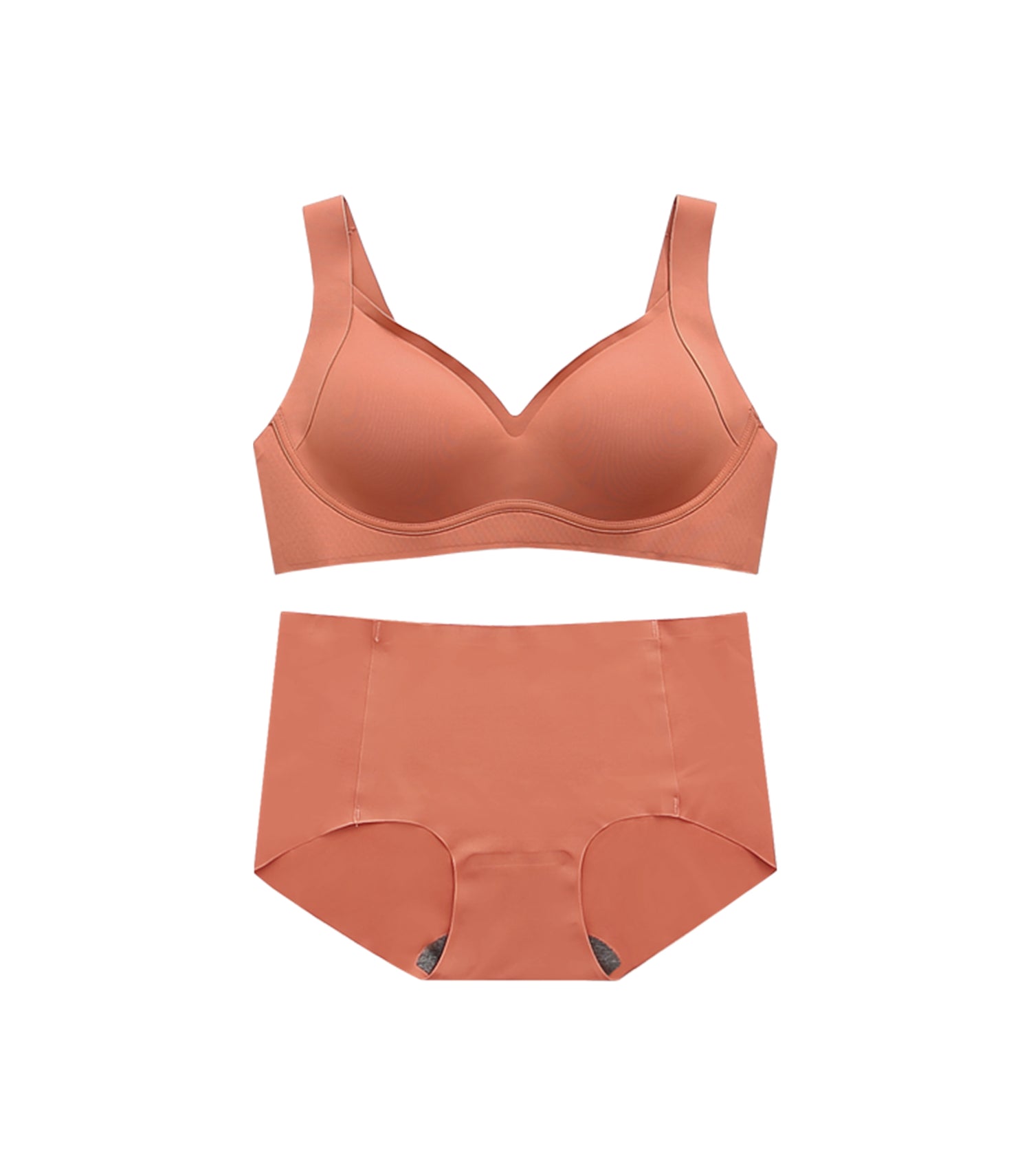 Comfortably Concentrated Seemless Wireless Modifying Bra Set Coral Orange