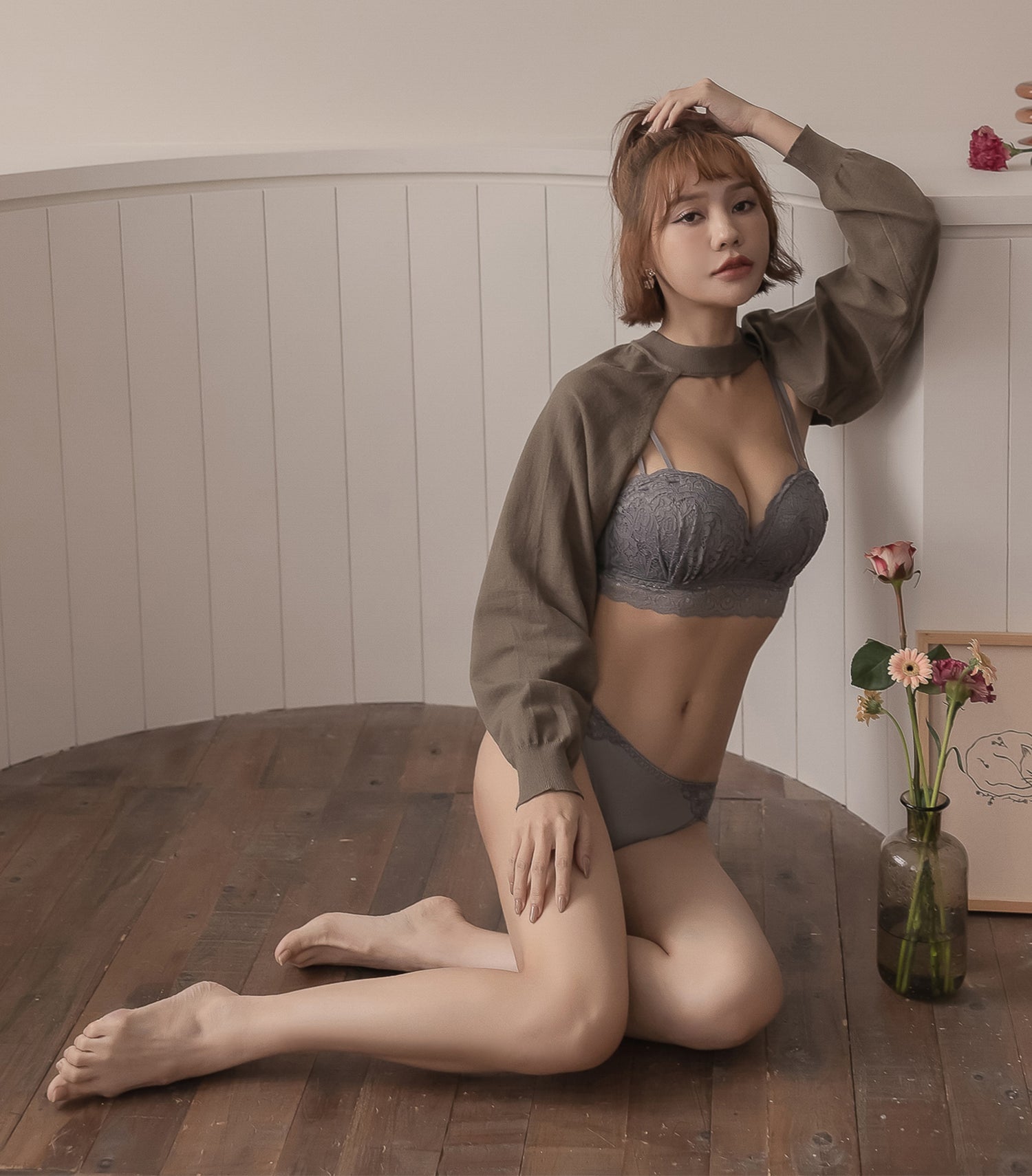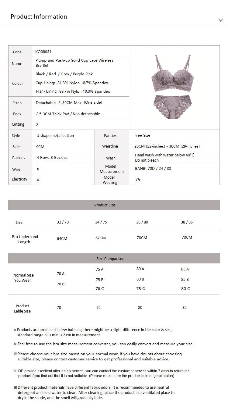Plump and Push-up Solid Cup Lace Wireless Bra Set Grey