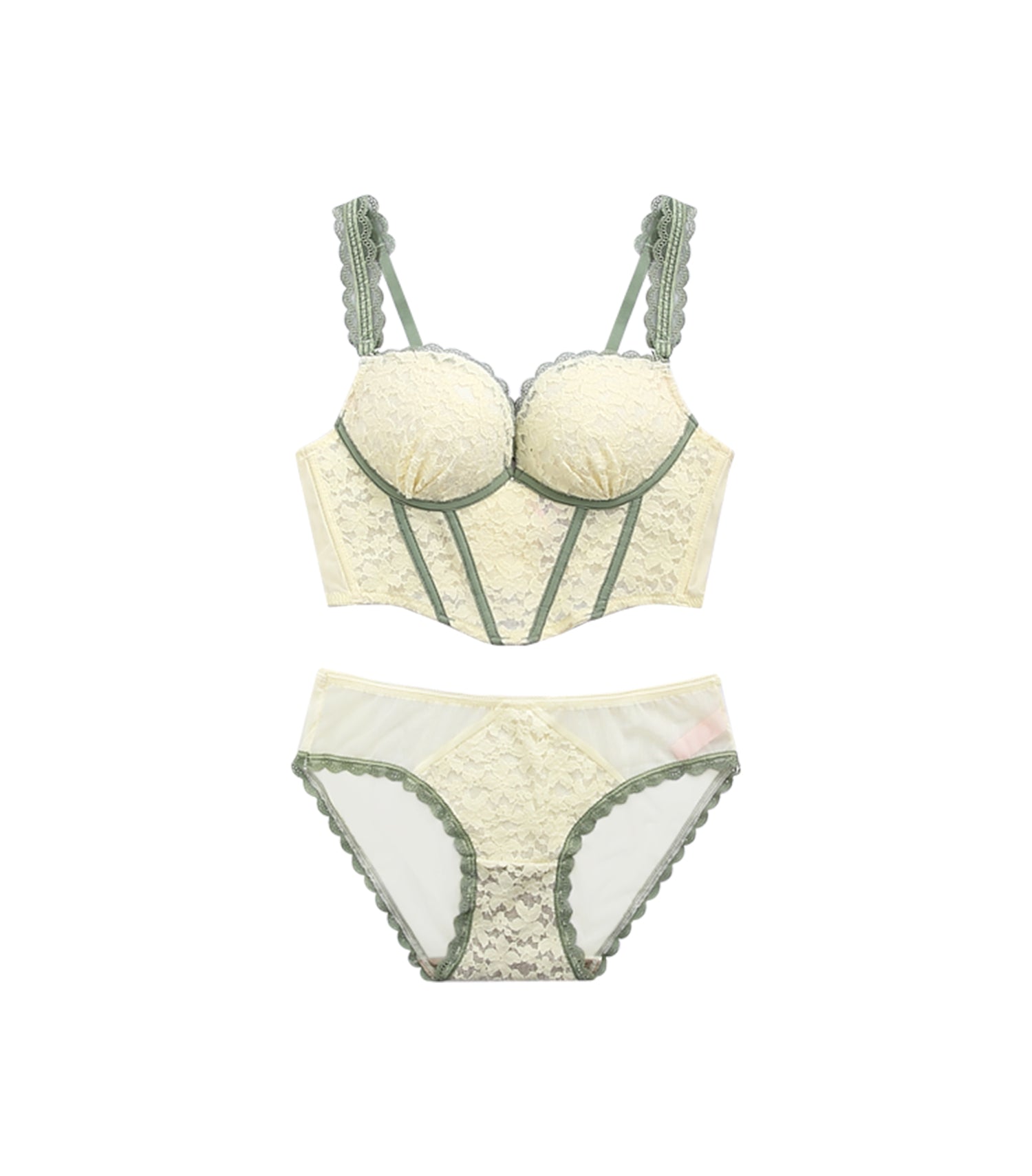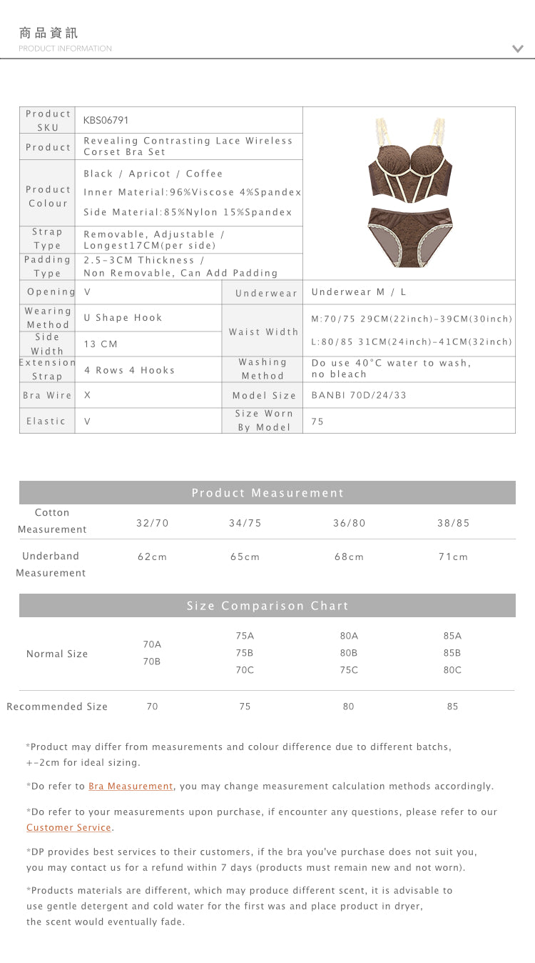 Revealing Contrasting Lace Wireless Corset Bra Set Apricot