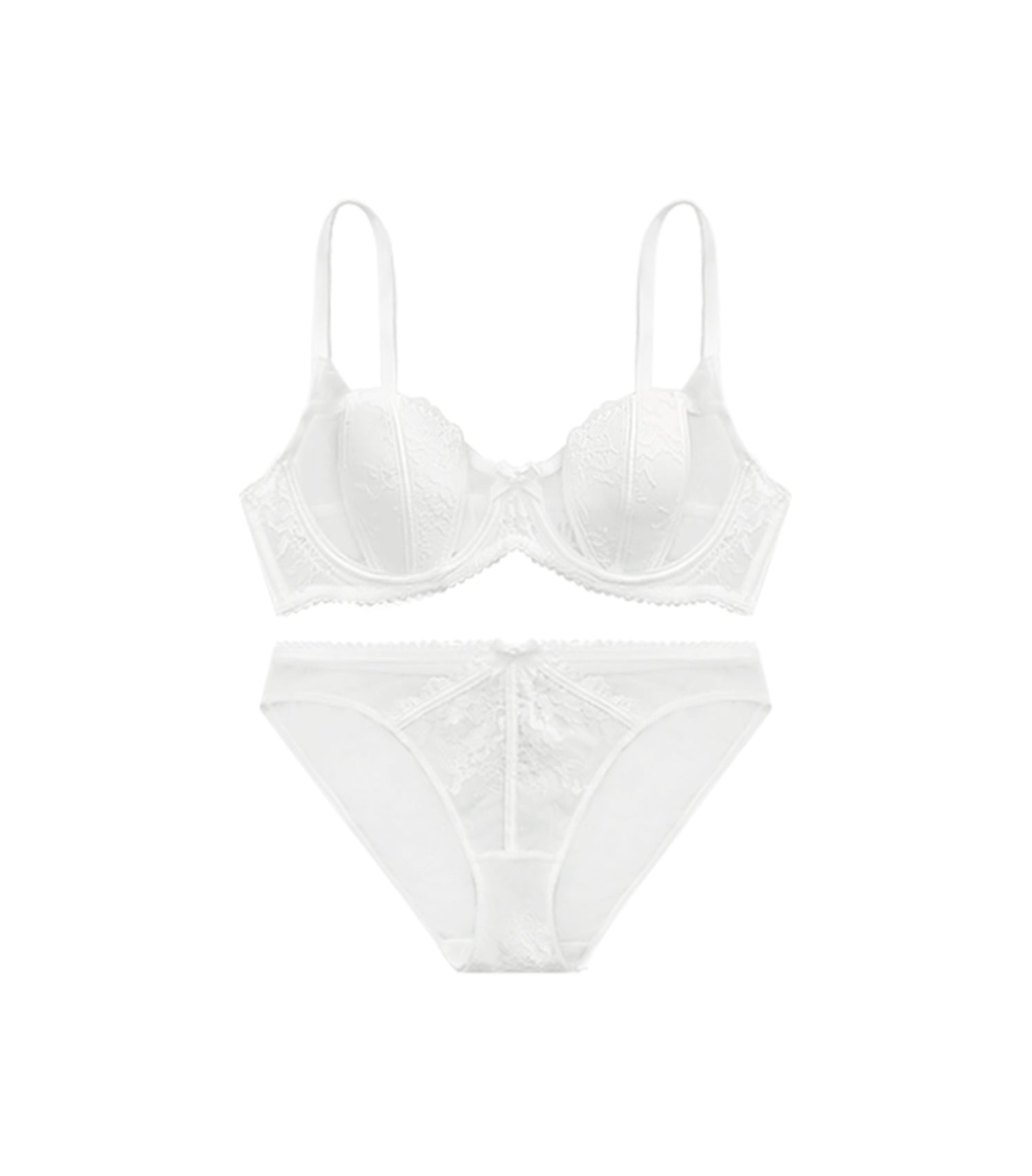 Jacquard Fabric Shell Cup Bra Set White
