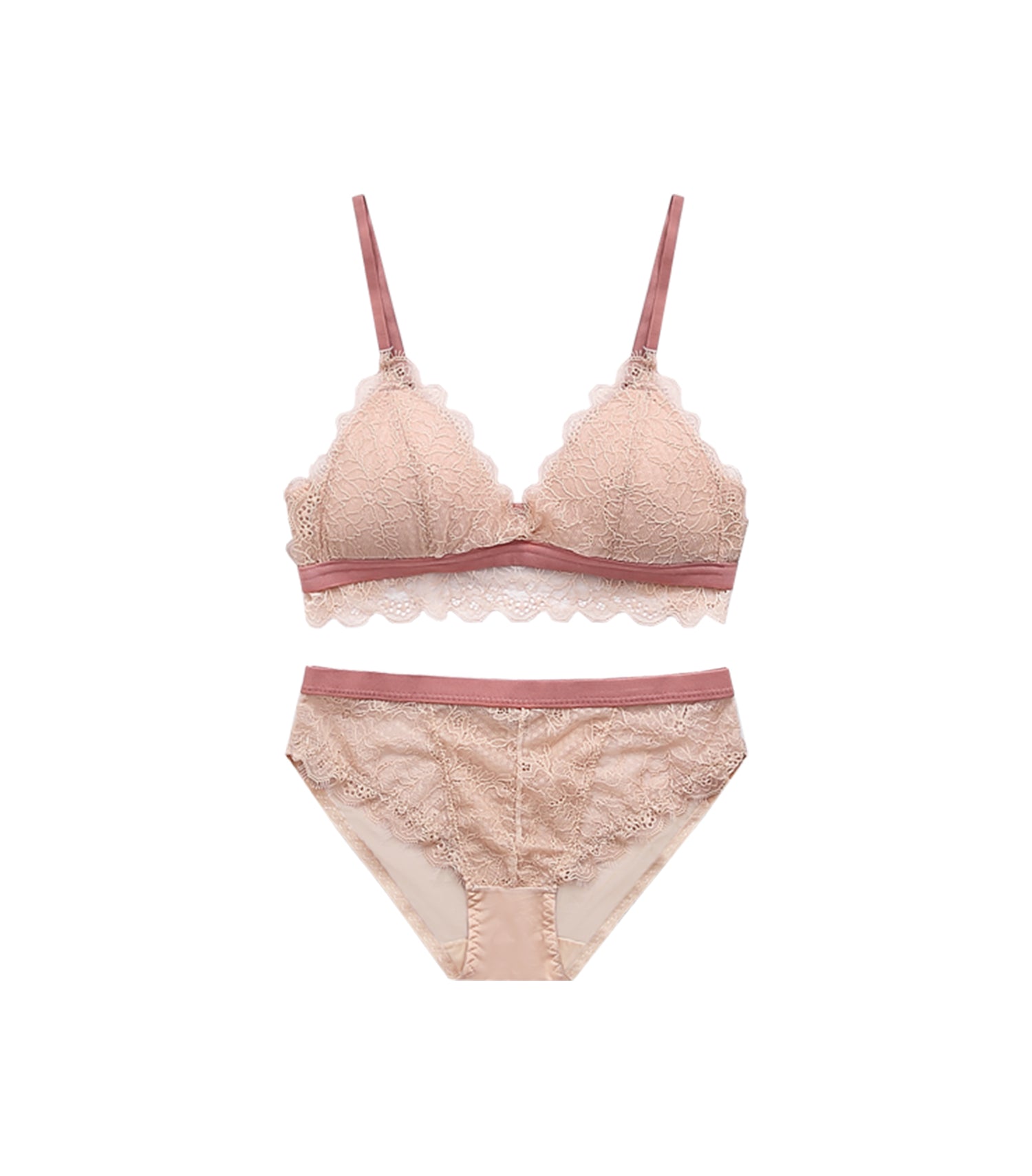 Low Gore Laces Color Matching Beauty Triangular Cup Wireless Bra Set Pink