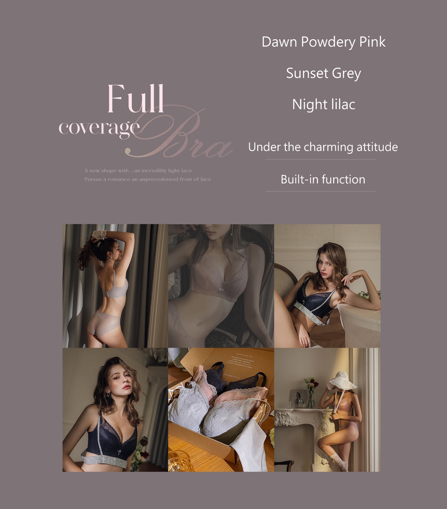 Romance-Full Coverage Light and Thin Dimentional Cotton Bra Set Night Lilac