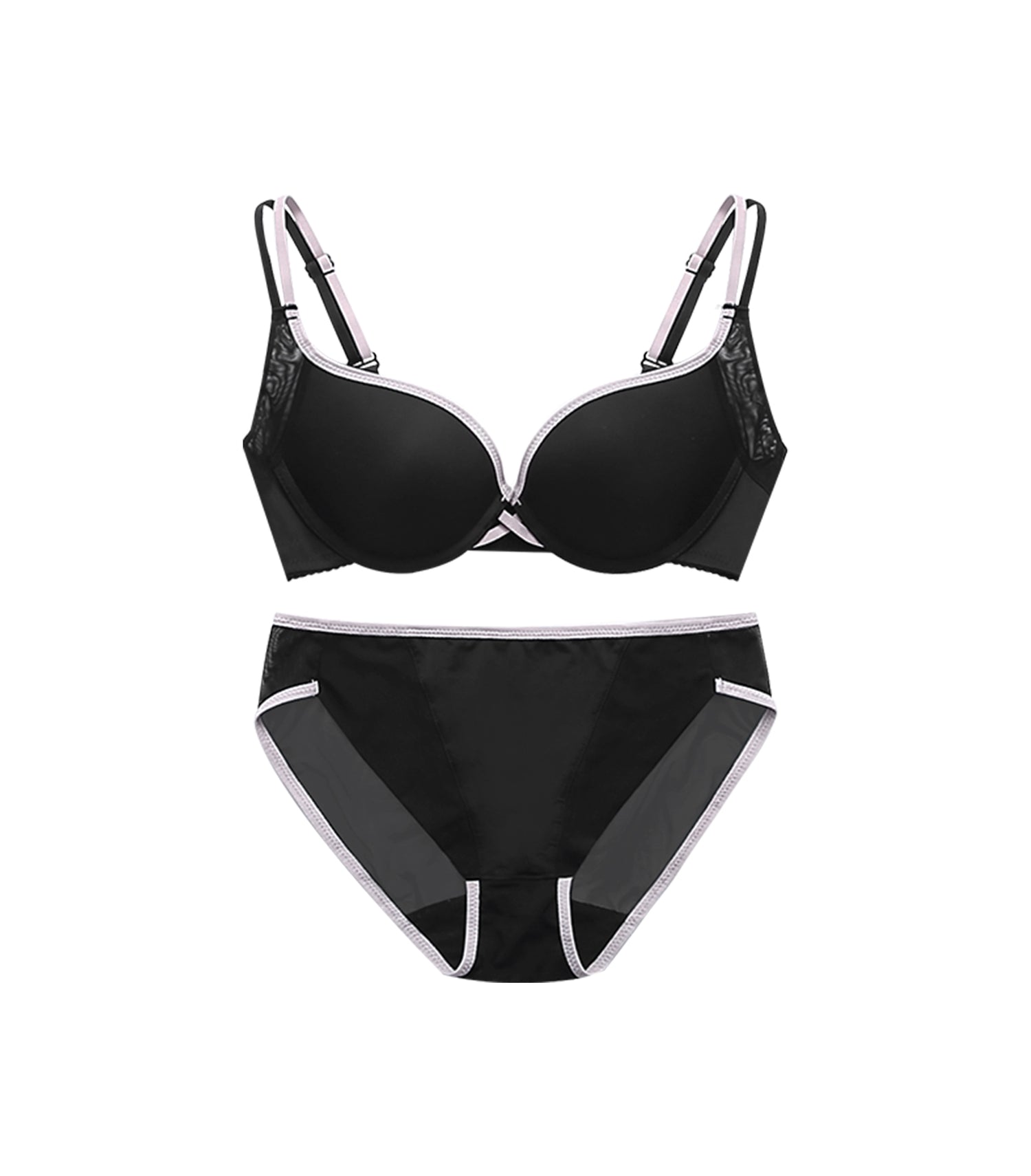 Star-Silky Milk Front Cross Design Soft Wired Bra Set Black